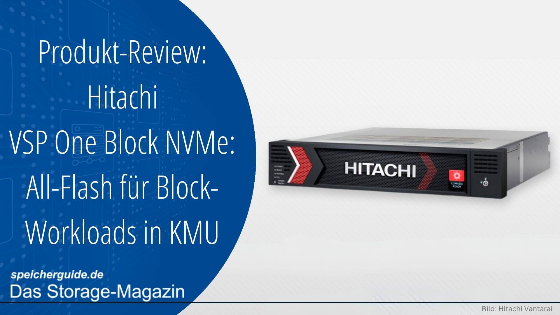 Produkt-Review: Hitachi VSP One Block NVMe ist ein 2U-All-Flash-Primärspeicher für Virtualisierung und Datenbanken. Die Midrange-Appliance passt zu klassischen SANs und modernen NVMe-over-Fabrics. Für Resilienz sind »Immutable Safe Snapshot« und 4:1-Datenreduzierung vorgesehen.